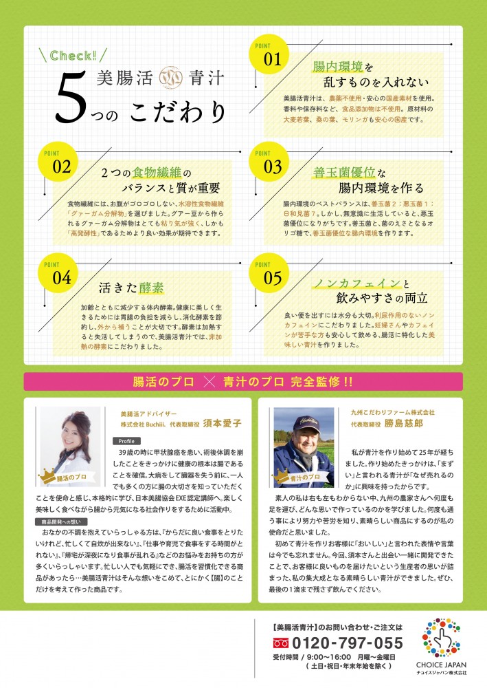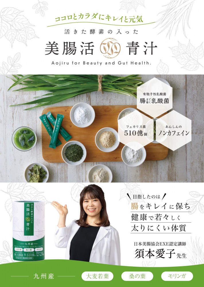 | 原材料名 | 大麦若葉粉末(大麦若葉(九州産))、イソマルトオリゴ糖、食物繊維(グァーガム分解物)、米麹粉末、マルトデキストリン、有胞子性乳酸菌末、桑葉粉末、モリンガ粉末、殺菌乳酸菌末、植物発酵エキス(黒砂糖、キャベツ、苺、りんご、大根、トマト、柚子、柿、キウイフルーツ、キュウリ、ナス、ほうれん草、小松菜、ピーマン、セロリ、ゴーヤ、シソ、にんじん、プルーン、ヨモギ、大豆、イソマルトオリゴ糖、ぶどう、もも、みかん、南瓜、霊芝、日本山人参、ケール、大麦若葉、モロヘイヤ、昆布、玄米、スイートコーン、キンカン、椎茸、米ぬか、レモン、ココア、キクラゲ、ワカメ、ヒバマタ、根昆布、ブルーベリー、アケビ、ヤマモモ、アカメガシワ、オオバコ、クマ笹、スギナ、ビワの葉、舞茸、ヒジキ、梨、チンゲン菜、梅、レンコン、ウコン、伊予柑、ビタミン菜、イチジク、ヤマブドウ、ごぼう、ブロッコリー、生姜、カリン、パセリ、アスパラガス、セリ、木苺、三つ葉、ミョウガ、グミ、ブラックベリー、冬苺)、(一部に乳成分・りんご・キウイフルーツ・大豆・ももを含む) |